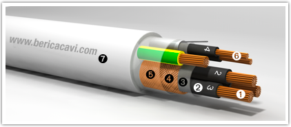Marcatura: BERICA CAVI S.P.A. ITALY FG7XOH2 Formazione Terra+FG7XH Formazione 0,6/1 kV O.R. CEI 20-22 II CE Anno/Lotto
