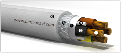 Cavi per energia schermati a treccia di rame stagnato, non propaganti la fiamma e a ridotta emissione di alogeni (Inverter tipo Siemens).